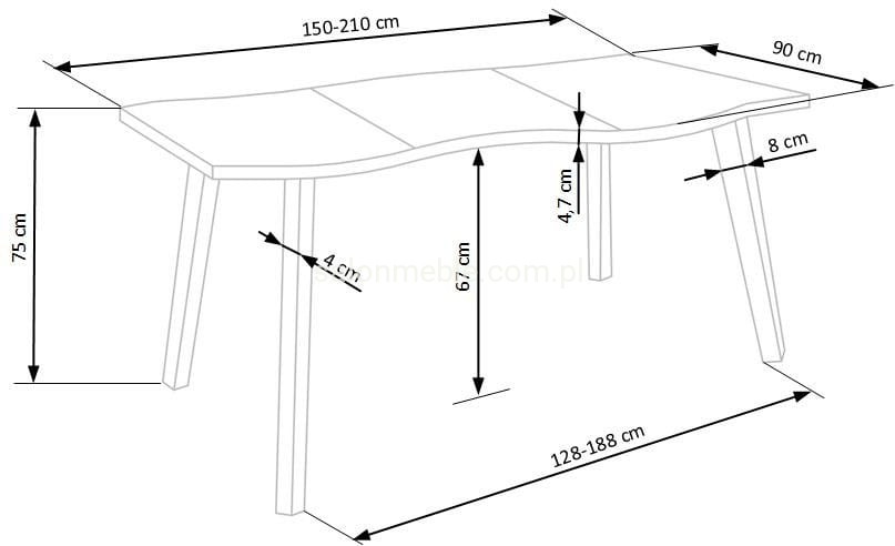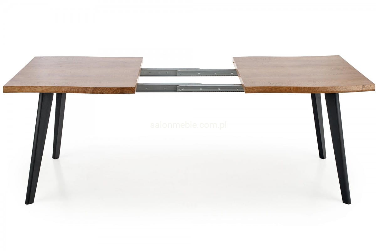 wymiary: 150-210/90/75 cm, stół rozkładany, materiał: MDF okleinowany / stal malowana proszkowo, kolor: blat - dąb naturalny, nogi - czarny