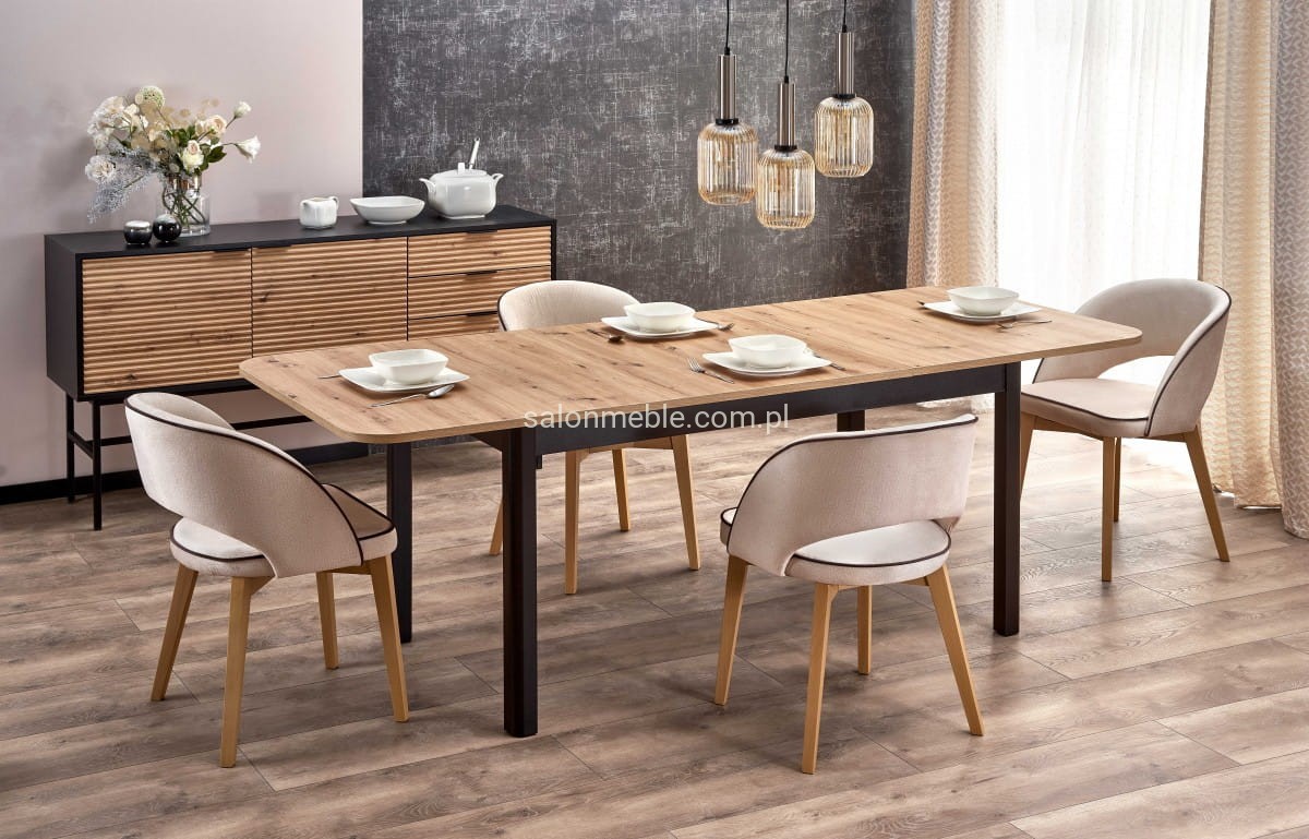FLORIAN stół rozkładany blat - dąb artisan, nogi - czarny (2p=1szt)