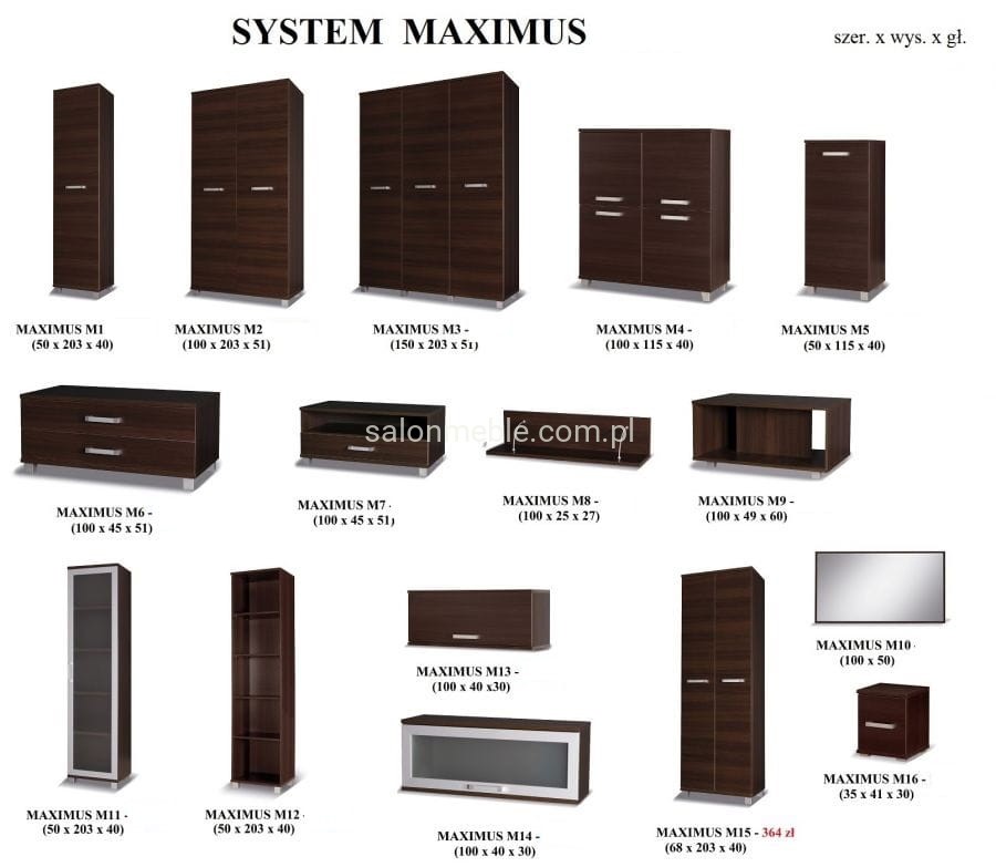 System Maximus to niezwykle efektowny i stylowy zestaw mebli, o bardzo solidnej konstrukcji, który w niepowtarzalny sposób wypełni każde wnętrze. Elementy z tego systemu, dzięki nowoczesnemu wzornictwu i kolorystyce frontów sprawią, iż mieszkanie stanie się naprawdę wyjątkowe.