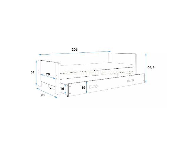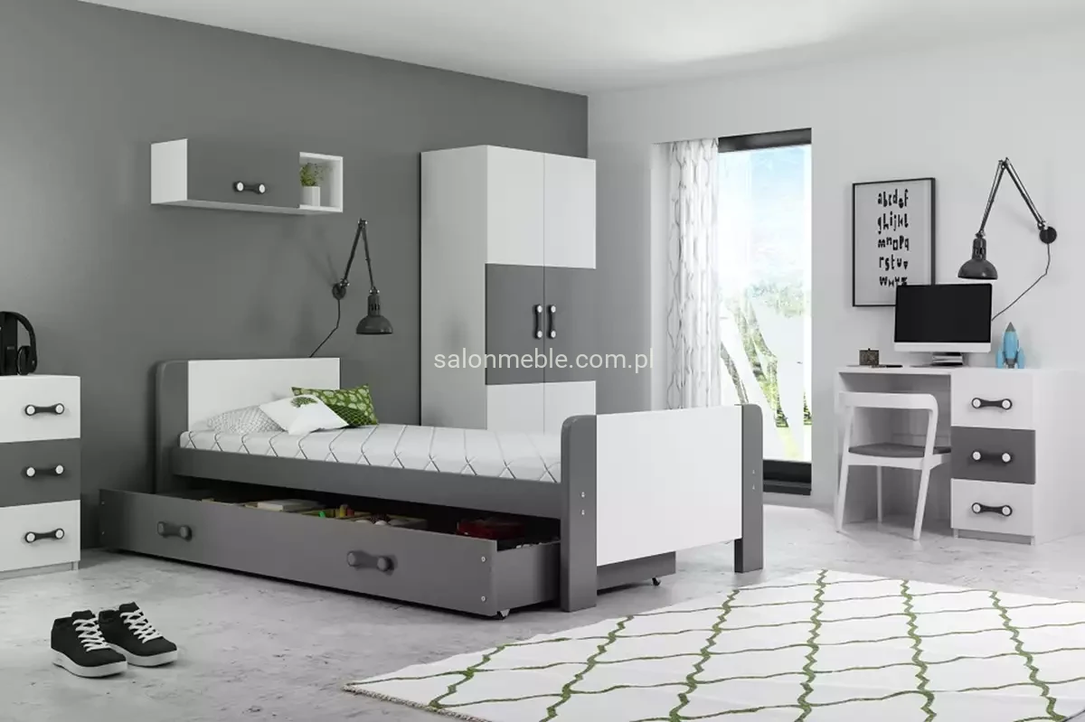 Rama łóżka DAREK wykonana z drewna sosnowego, pomalowana lakierem wodnym. Płyta MDF - pomalowana lakierem wodnym. Akcesoria montażowe - szybki i prosty montaż.