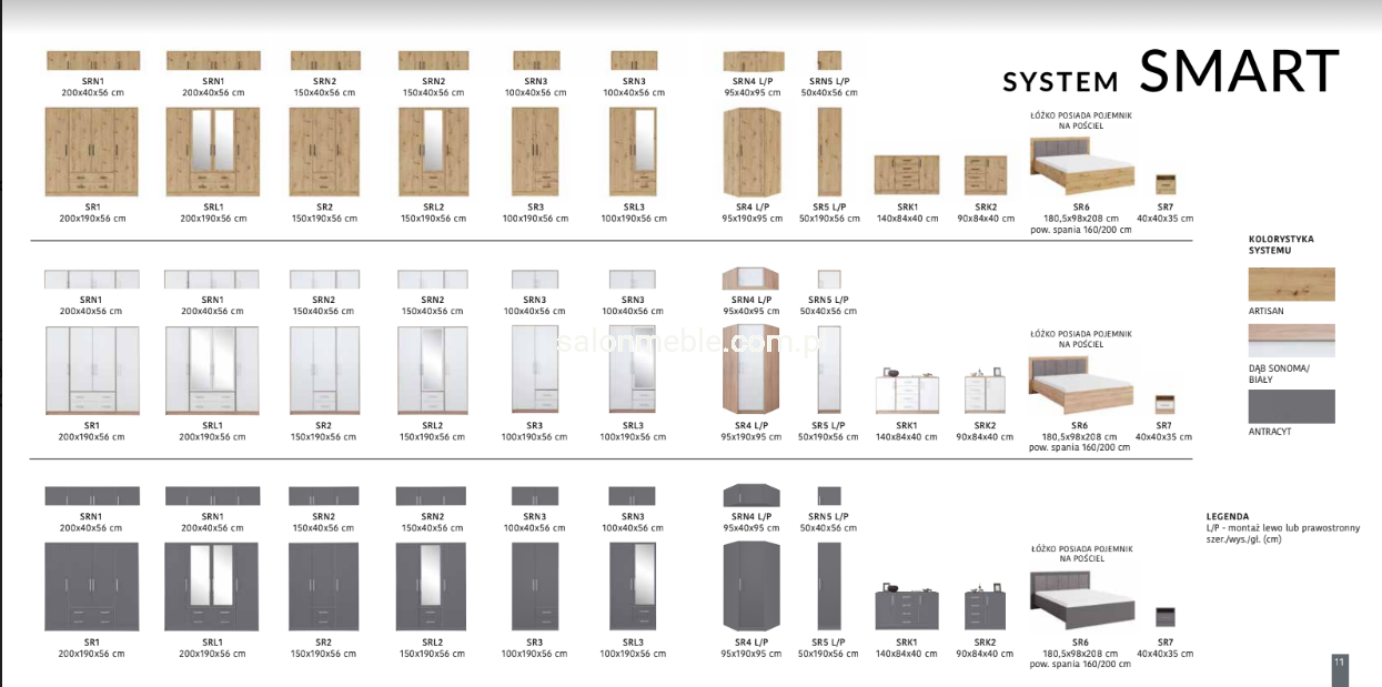 Pojemny i funkcjonalny system meblowy SMART SR5 L/P dedykowany do sypialni oraz przedpokoju. Wnętrze podzielone zostało w taki sposób, aby umożliwić łatwy dostęp do każdego modułu. Regał zamknięty SR5 L/P, wyposażony została w system półek. Kolor dąb artisan. Regał zamknięty SR5 L/P to jeden z wielu elementów z którego można stworzyć zestaw dopasowany do Twoich potrzeb użytkowania.