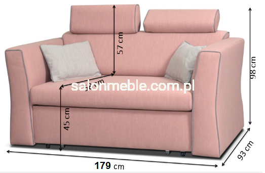 Sofa Ibiza 2R posiada funkcję spania, pojemnik na pościel. Dodatkowym atutem są ozdobne lamówki nadające sofie stylu i klasy. Sofa sprawdzi się w każdym salonie na długie lata ciesząc oko jakością i dobrym wyglądem.Sofa posiada ruchome zagłówki.