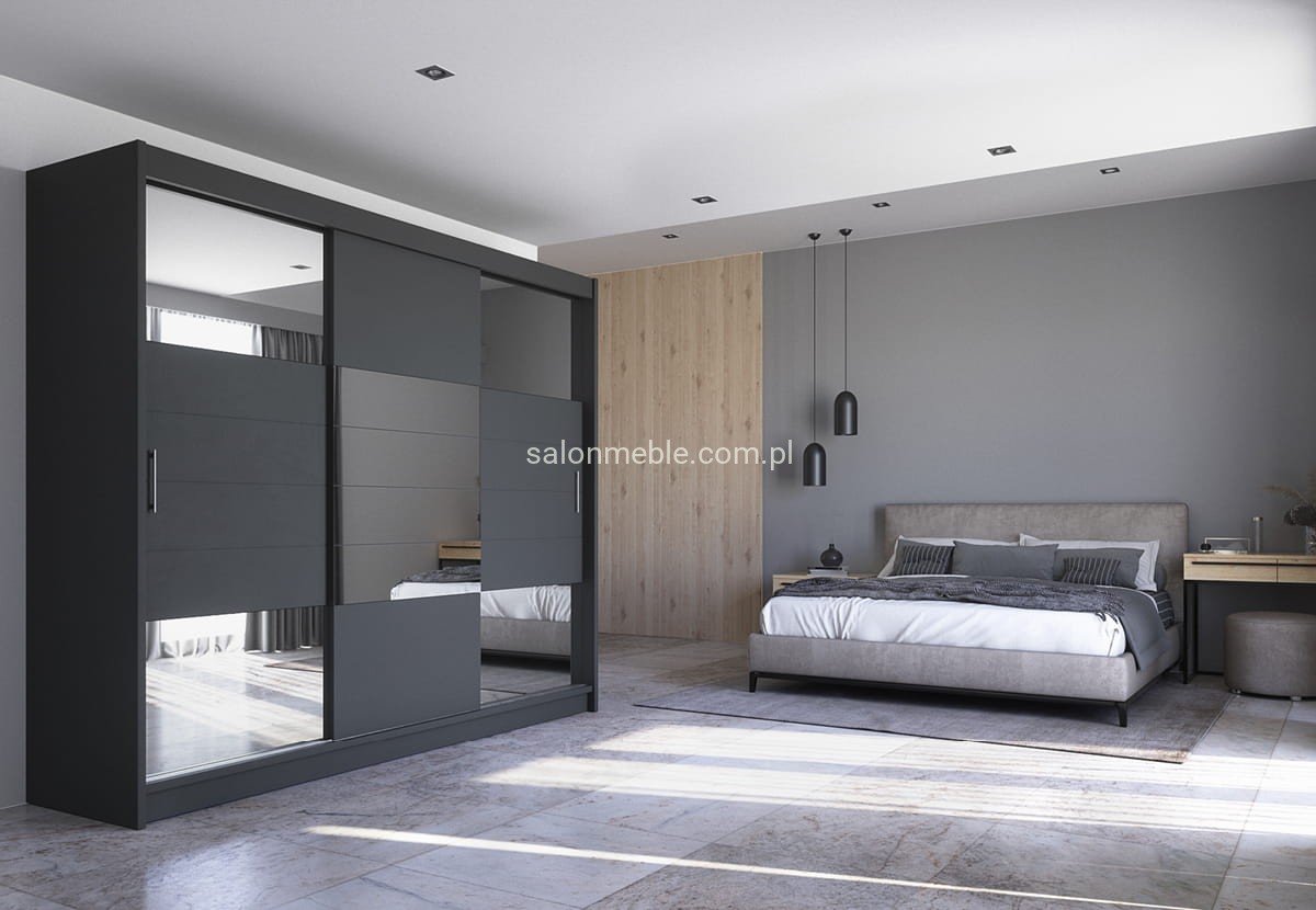 Szafa przesuwna Arkadia z designerskim szkłem to pojemna szafa o nowoczesnym wyglądzie. Wnętrze szafy zostało podzielone na segmenty takie rozwiązanie skutkuje szybkim dostępem do przechowywanych ubrań. Do dyspozycji jest drążek do wieszania odzieży wierzchniej i wizytowej. Aluminiowe prowadnice, dolne wózki na łożyskach.