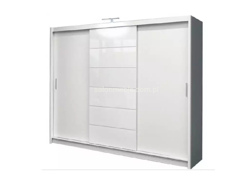 Szafa przesuwna Malibu to wysokiej jakości mebel o nowoczesnym designie , szafa posiada we wnętrzu półki oraz drążek na wieszaki. W szafach zastosowano metalowe prowadnice i łożyskowy system przesuwny firmy SEVROLL co gwarantuje łatwość przesuwania drzwi oraz wydłuża żywotność szafy.