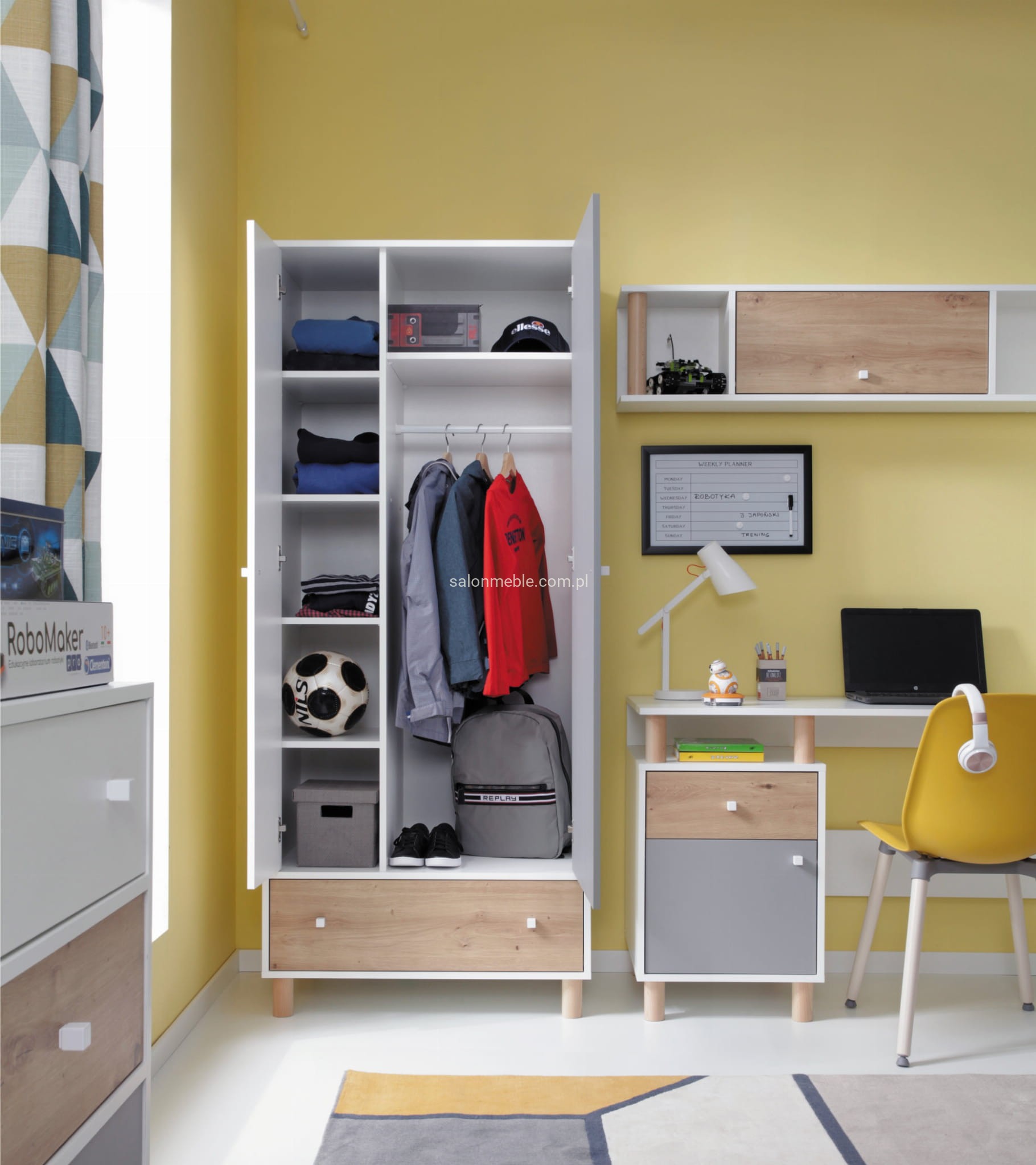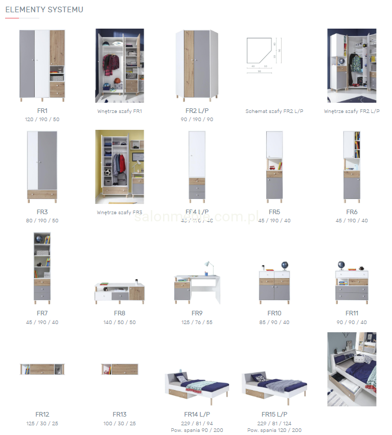 System mebli młodzieżowych Faro, to nowoczesny i bardzo funkcjonalny zestaw modułów, którymi można wyposażyć za równo pokój dziecięcy jak i młodzieżowy. Stylistyka systemu Faro nawiązuję do skandynawskich mebli, które charakteryzują się dodatkami drewnianymi takimi jak nóżki bukowe oraz połączenie kolorystyczne bieli, dębu Artisan i jasnej matowej szarości.