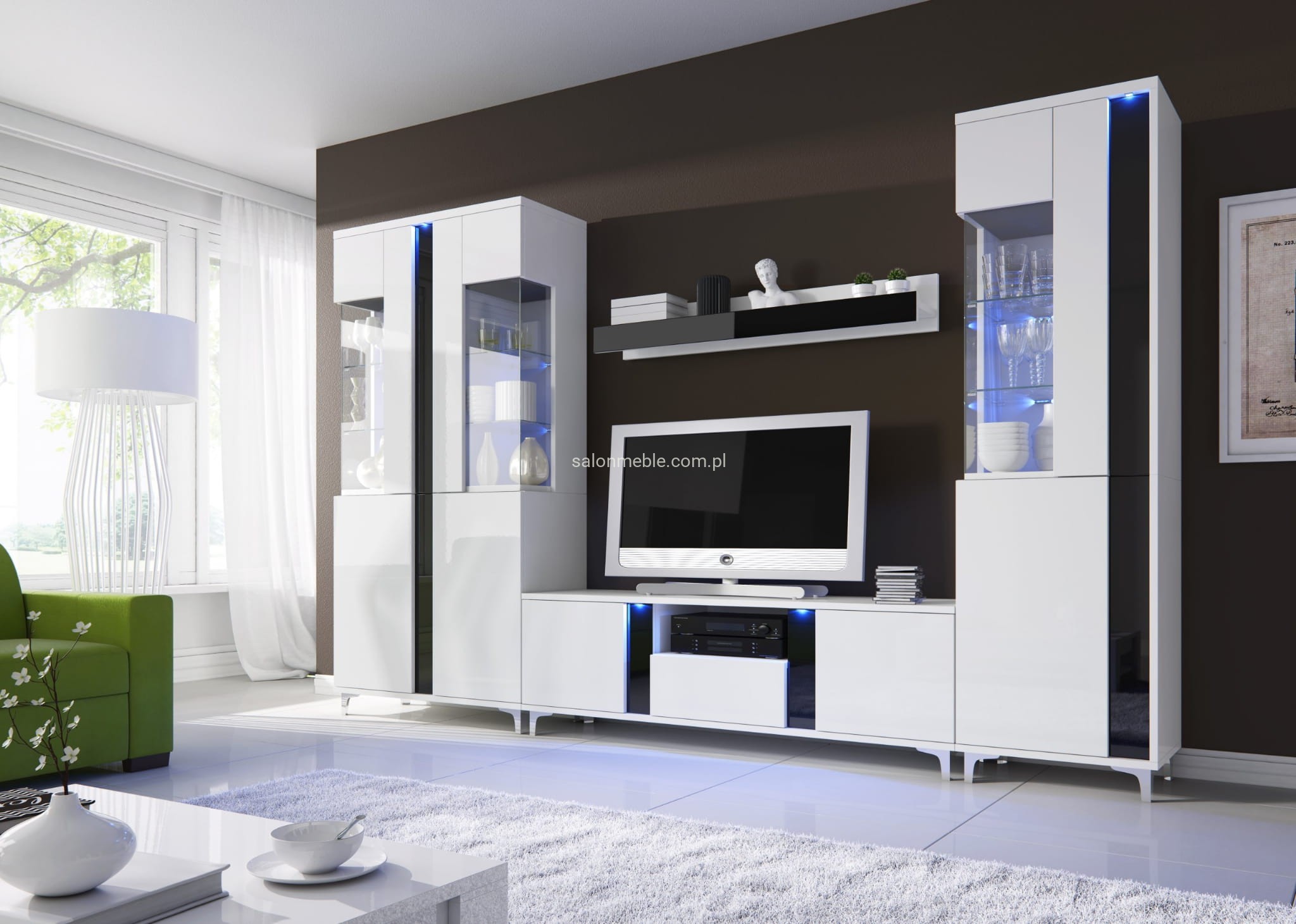 - biały połysk/szkło dymione