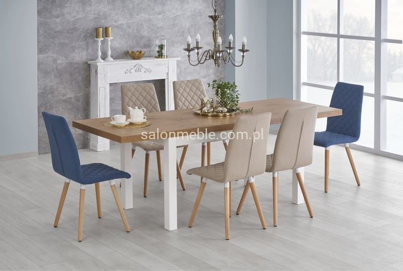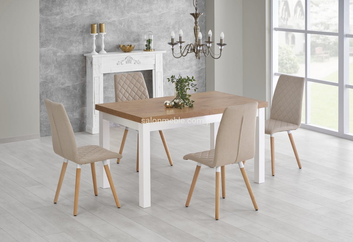 TIAGO stół rozkładany 140-220/80 blat: dąb lancelot, nogi: biały (3p=1szt)