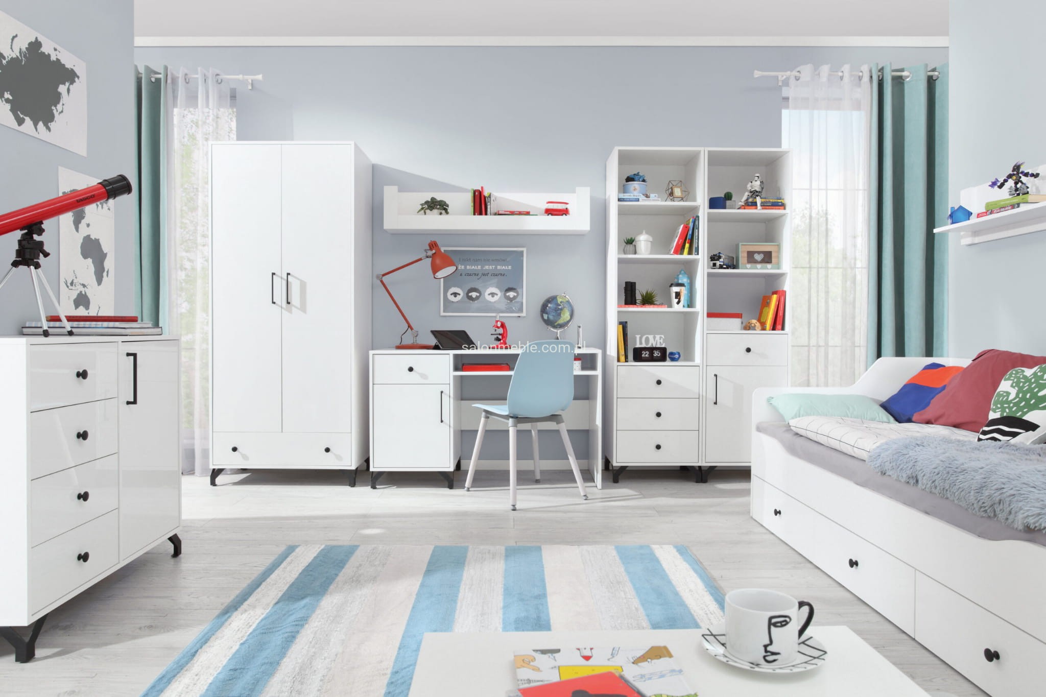 Meble systemowe Bergen to nowoczesny system meblowy, składa się z kilkunastu brył. Wyjątkowa kolorystyka czystej bieli sprawia że pasują do Twojego pokoju. System ten oferuje wiele elementów z których można tworzyć własne ustawienia. Są one wykonane starannie z najlepszej jakości materiałów, przez co są doskonale dostosowane do potrzeb wszystkich klientów.