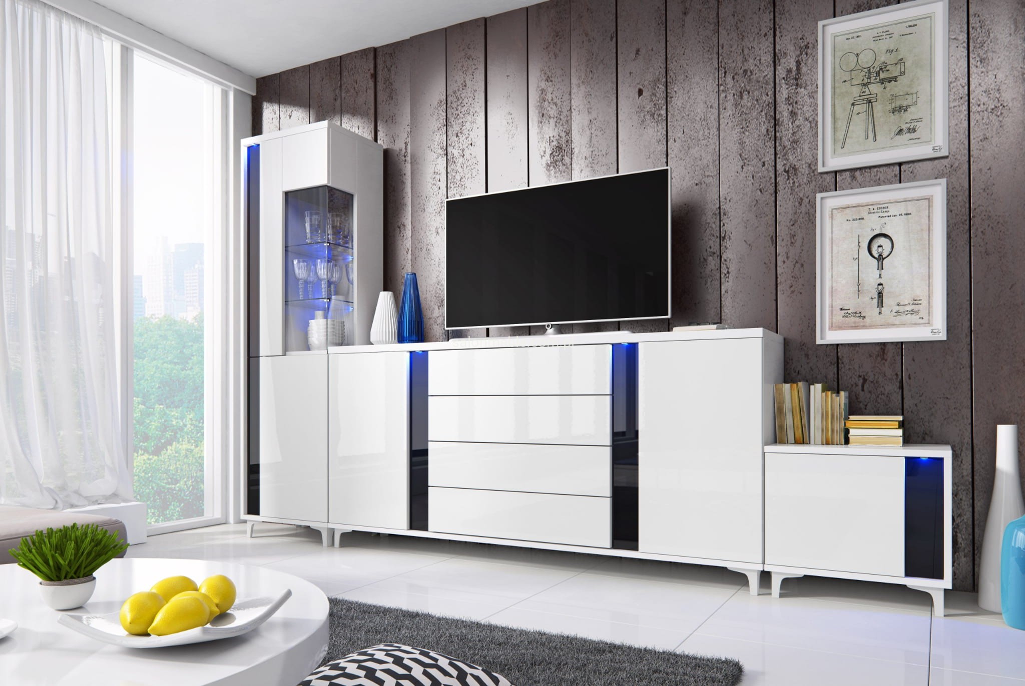 - biały połysk/szkło dymione